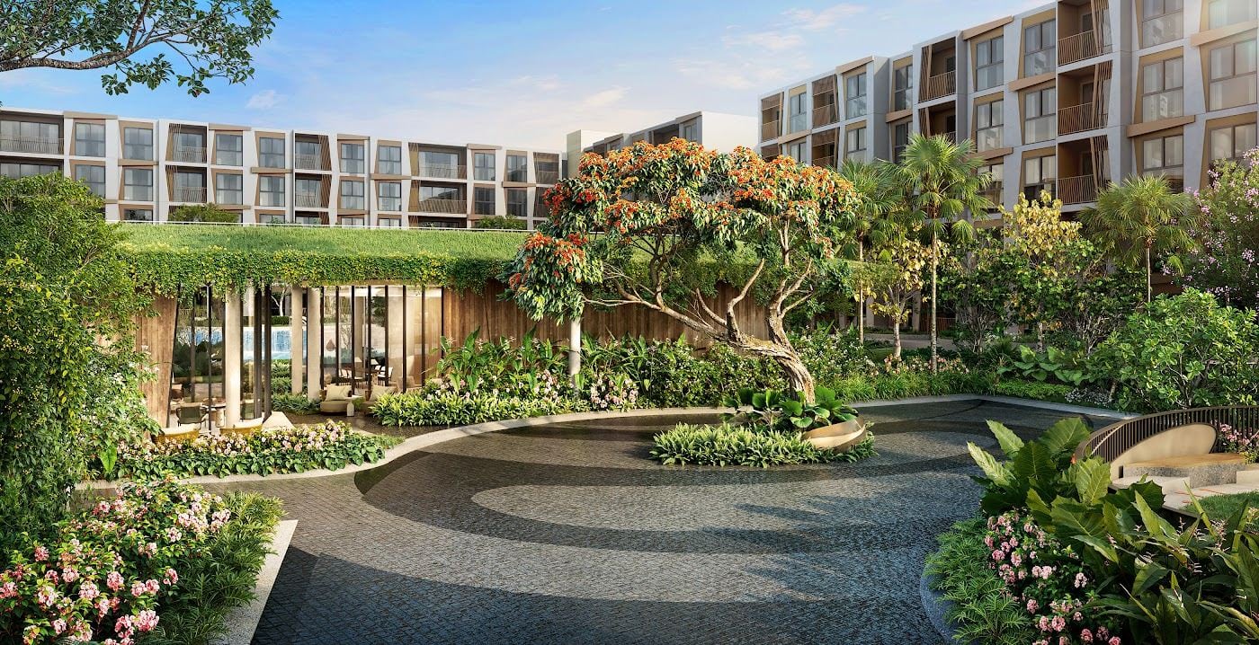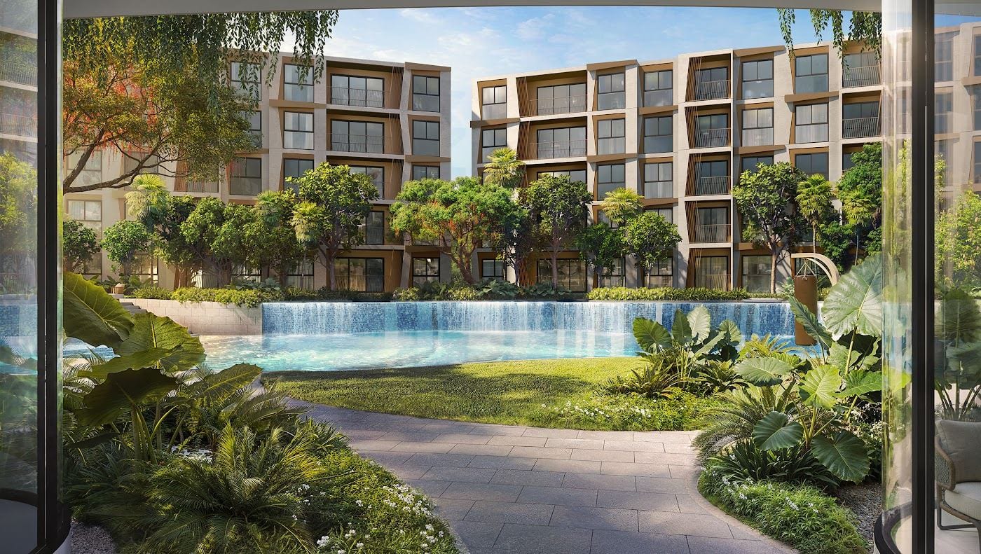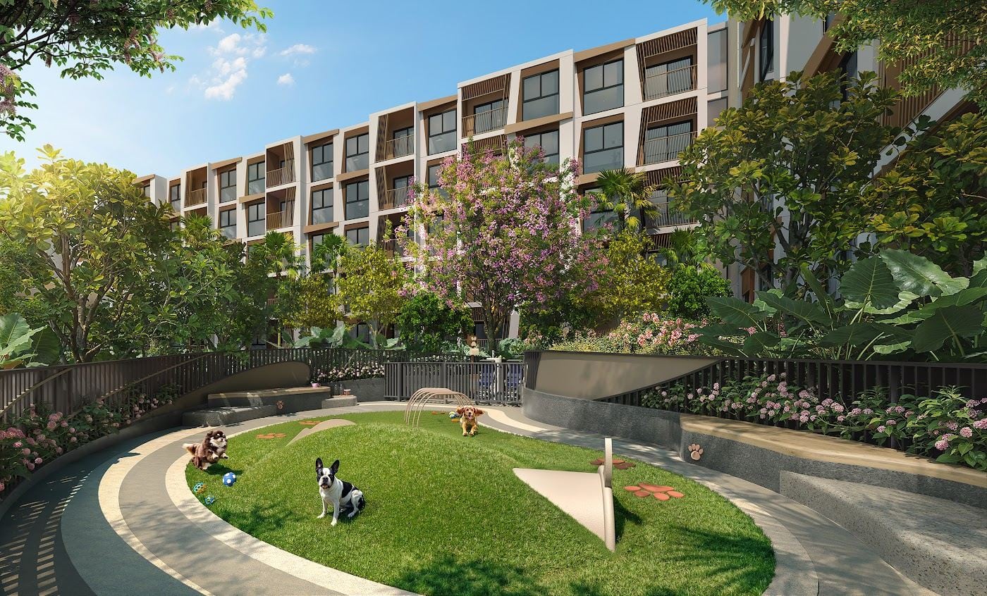 Available market listings suggest that Rhea is a low-rise condominium rather than a high-rise urban tower, with one-bedroom and two-bedroom formats that fit the current Phuket demand pattern for compact but usable lifestyle units. Several 2026 listings point to one-bedroom units around 35 sq.m. and two-bedroom units around the high-40s to mid-60s sq.m., while one secondary project source describes the development as three 5-storey residential buildings designed around a more relaxed, nature-led setting. The same group of sources also frames the project as pet-friendly and positioned between Surin and Bang Tao, which matters because this part of Phuket increasingly attracts longer-stay residents and not only short-term holiday traffic.